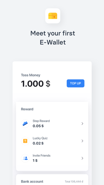Toss-Reward point Topup là một ứng dụng di động được thiết kế để khuyến khích mọi người duy trì sức khỏe và hoạt động một cách tích cực, đồng thời thưởng cho họ bằng cách nạp tiền điện thoại di động miễn phí. Được phát triển bởi Viva Republica, ứng dụng này có sẵn trên các thiết bị Android và thuộc danh mục Kinh doanh & Năng suất, cụ thể là Tài chính.